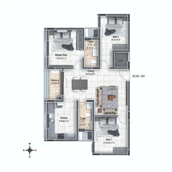 DRA Beena Clover is an elegant project developed by the famous DRA Homes. Who is famous for building affordable and luxury homes. Spread across a majestic site area there are 217 flats for sale in this community. These apartments in Selaiyur are configured as 2 & 3 BHK units with a unit size ranging between 1097 - 1362 Sq.Ft. All the flats open out to beautiful balconies and come planned with car parks and lifts. Located in a developing suburb these flats are also close to prime residential areas. Which makes these flats a wonderful choice for investment and at the same time living with your family.
