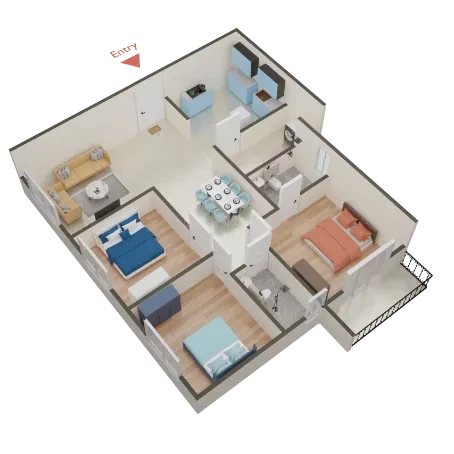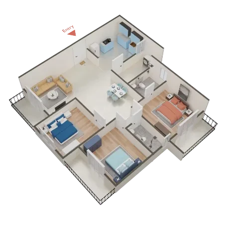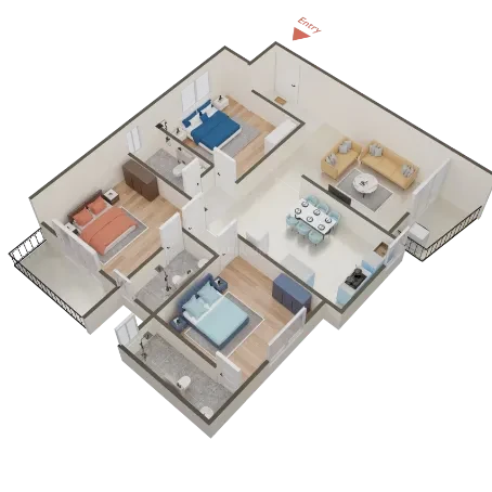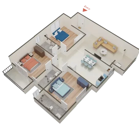 - Balconies & Utility: Anti-Skid Ceramic tiles