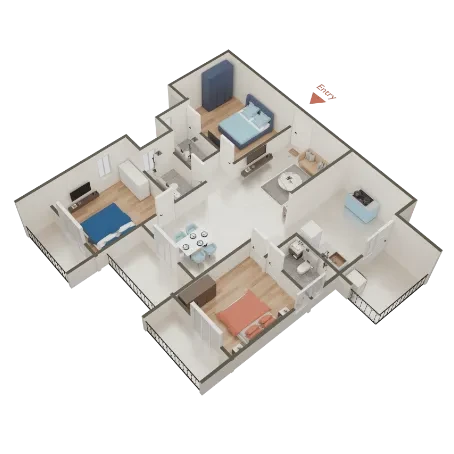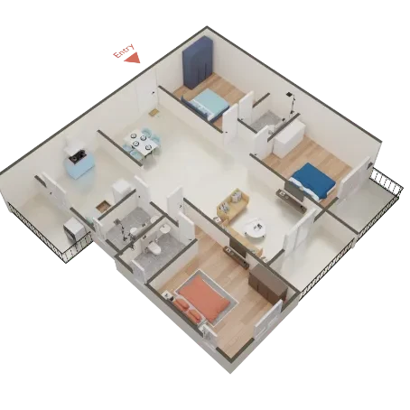 - Balconies & Utility: Anti-Skid Ceramic tiles