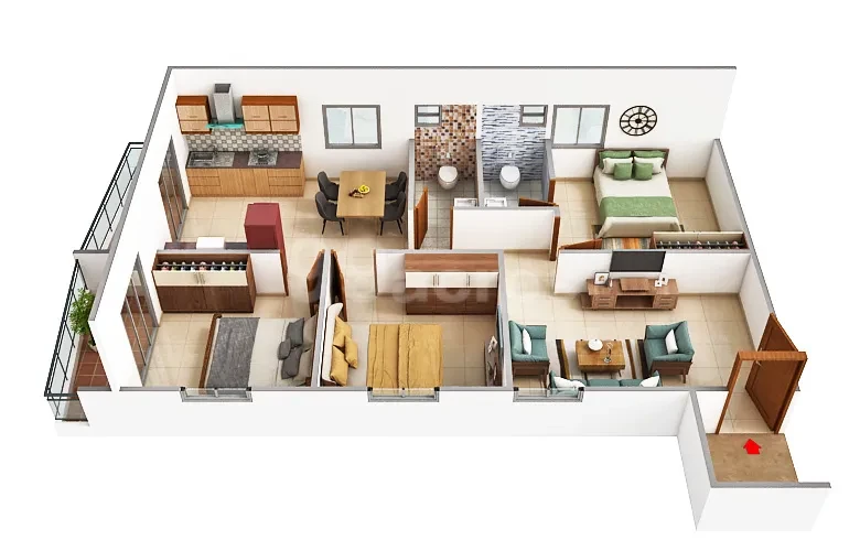 - Balconies & Utility: Anti-Skid Ceramic tiles