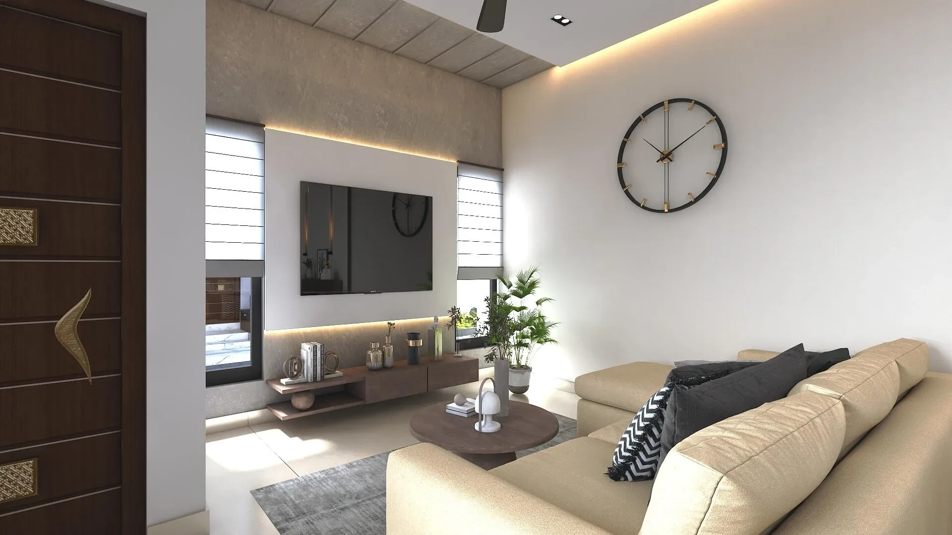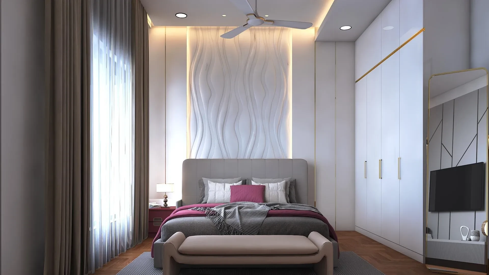 Ceiling: Finished with 2 coats of putty, 1 coat of primer & 2 coats of interior emulsion