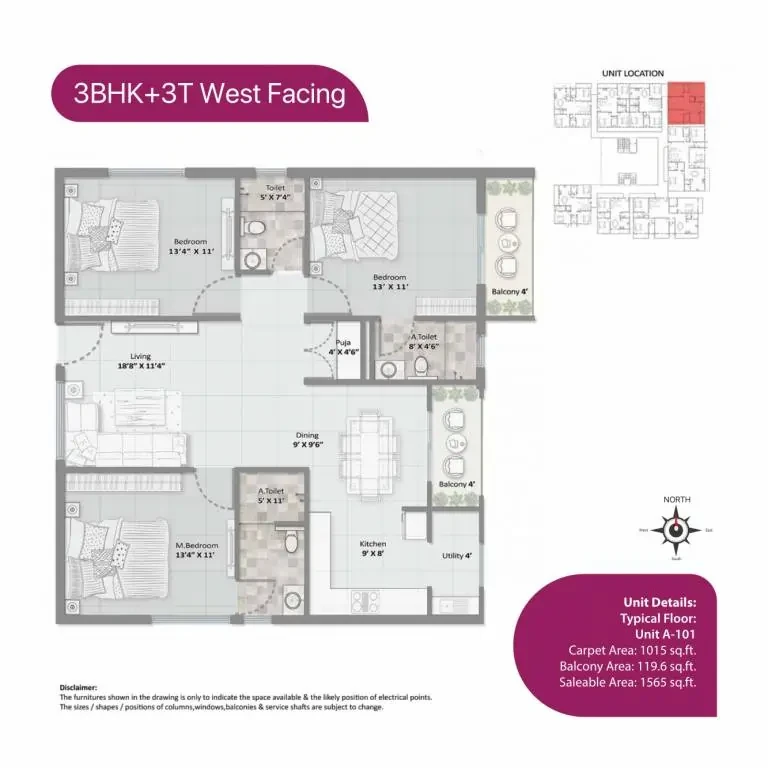 - Living, Dining, Kitchen & Bedroom - Vitrified Tiles Balconies/Utility/