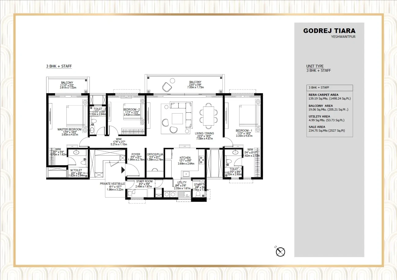 Godrej Tiara by Godrej Properties redefines luxury living in Goraguntepalya, Yeshwanthpur. Spread over 5 acres, this thoughtfully designed high-rise community offers 344 spacious 3 and 4 BHK Vaastu-compliant apartments, with just 4 homes on each floor to ensure privacy and comfort. Residents enjoy a tranquil environment, thanks to 75% open spaces, while benefiting from close proximity to major business districts, healthcare centers, and lifestyle destinations in North-West Bangalore. The project also boasts seamless connectivity to key roads and neighborhoods, making it an ideal choice for modern urban living.