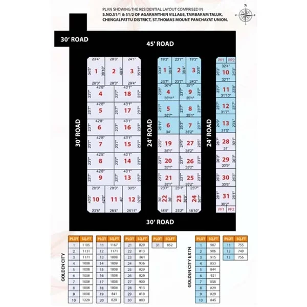 Experience the joy of modern living at Golden City, a CMDA & RERA-approved residential project by Value Reality, located in Agaramthen near Tambaram and Perungalathur. Designed for comfort and convenience, Golden City offers plots ranging from 803 sq.ft to 1,229 sq.ft, and Golden City Extn plots ranging from 749 sq.ft to 921 sq.ft, giving you the perfect space to build your dream home. With wide roads, clear titles, and a peaceful environment, it's the ideal setting for a comfortable and secure lifestyle. Enjoy unmatched connectivity and everyday convenience with Perungalathur Bus Stand just 10 minutes away and Tambaram Railway Station only 9 kms from Golden City. Surrounded by reputed schools, hospitals, and shopping hubs, Golden City places everything you need within easy reach — a community where life grows brighter, and every day feels like home.