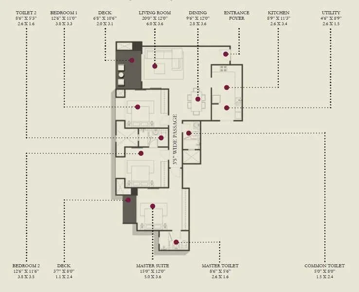 Split A/C point in living / dining & bedrooms