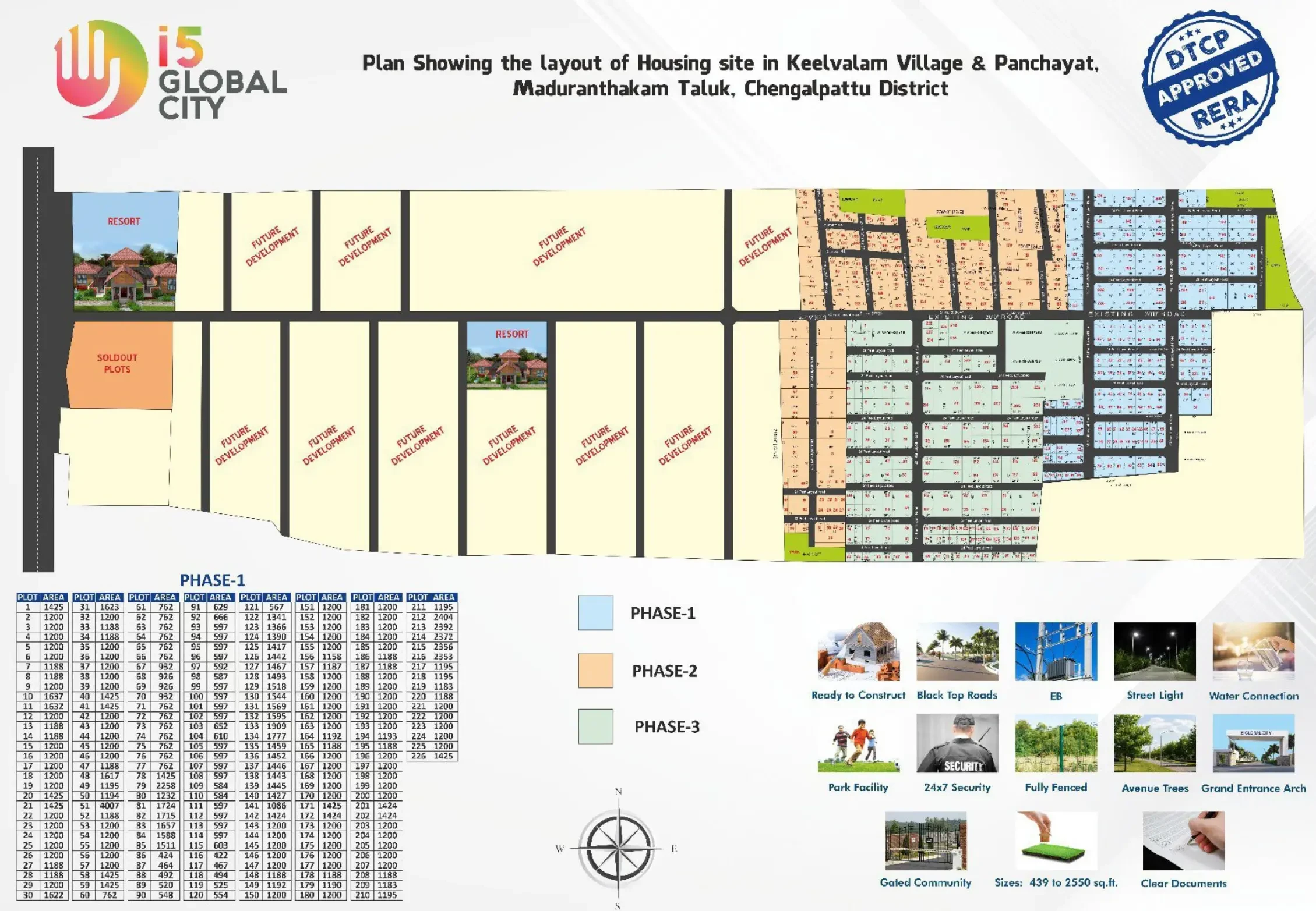 i5 Global City is a premium gated community residential plot project located in Madurantakam, Chennai (Chengalpattu District). General Specifications