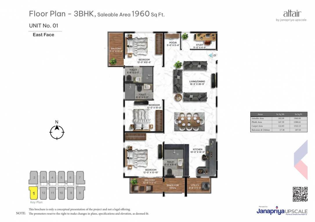 Altair is a modern township spread over 1 acre and has one tower with 144 3 BHK apartments. Most of the residents at Altair work at Hi-Tech City, ECIL & NFC. Considering your day-to-day interaction with the essentials at home, our experienced architects plan and design the apartments meticulously for functional & ergonomic living. Our team ensures you have the maximum space in your living area to make your stay comfortable.