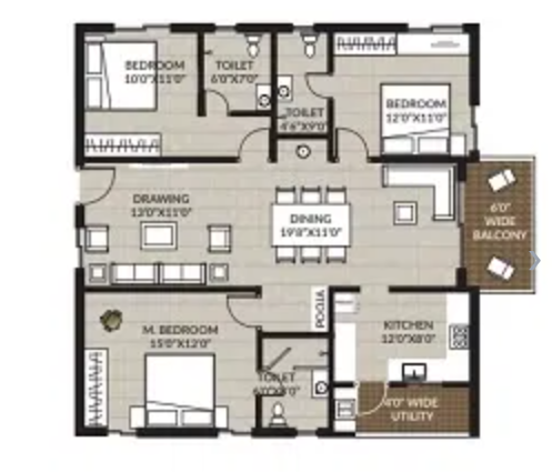 Configuration: 3 BHK Luxury Apartments