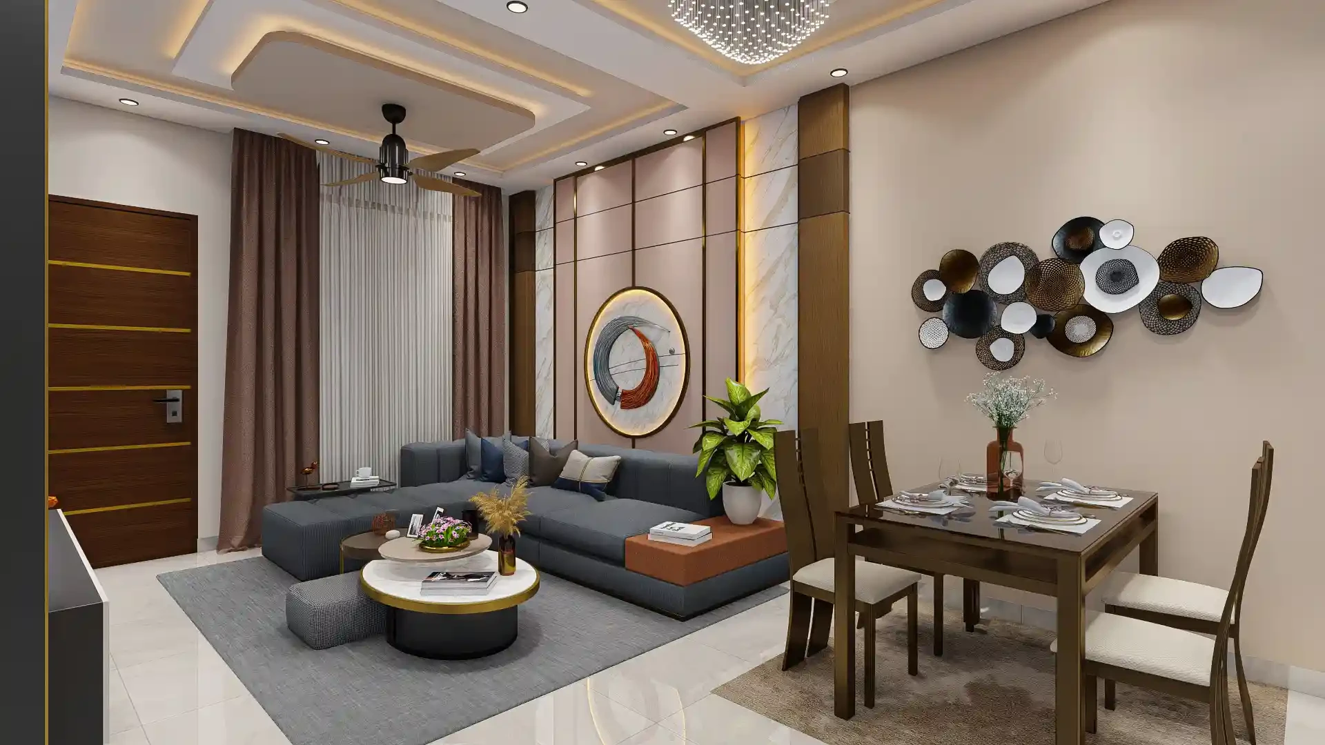 Main Door: Teak wood outer frame and teakwood panelled shutter with polish