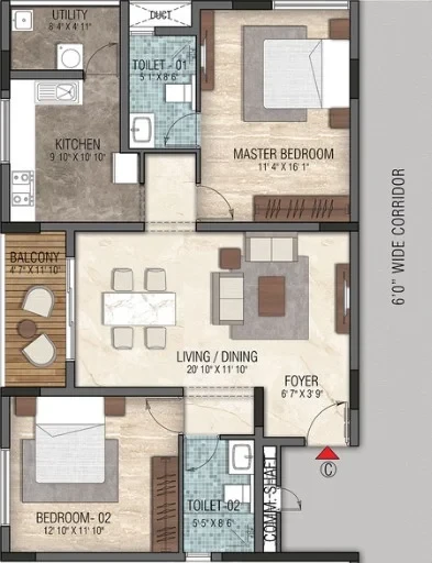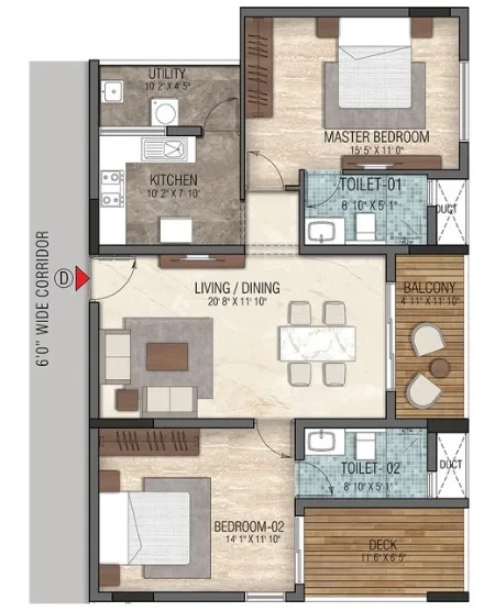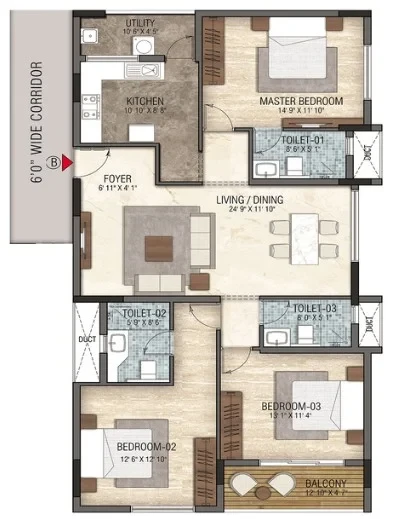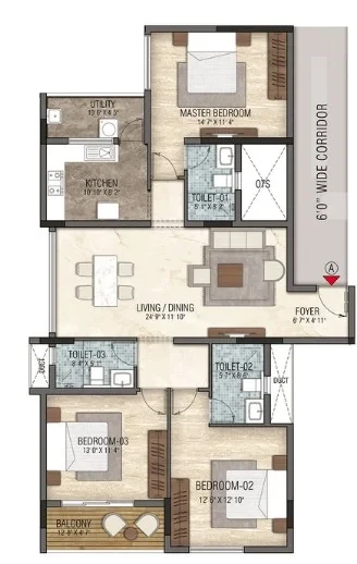 - 2 and 3 BHK configurations, nestled within a single block with adequate lung space.