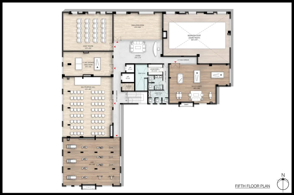 Indoor: Badminton court, mini-theatre with surround sound, simulator room, snooker room, indoor shuttle-court, multi-purpose hall, well-equipped gymnasium, bar counter.
