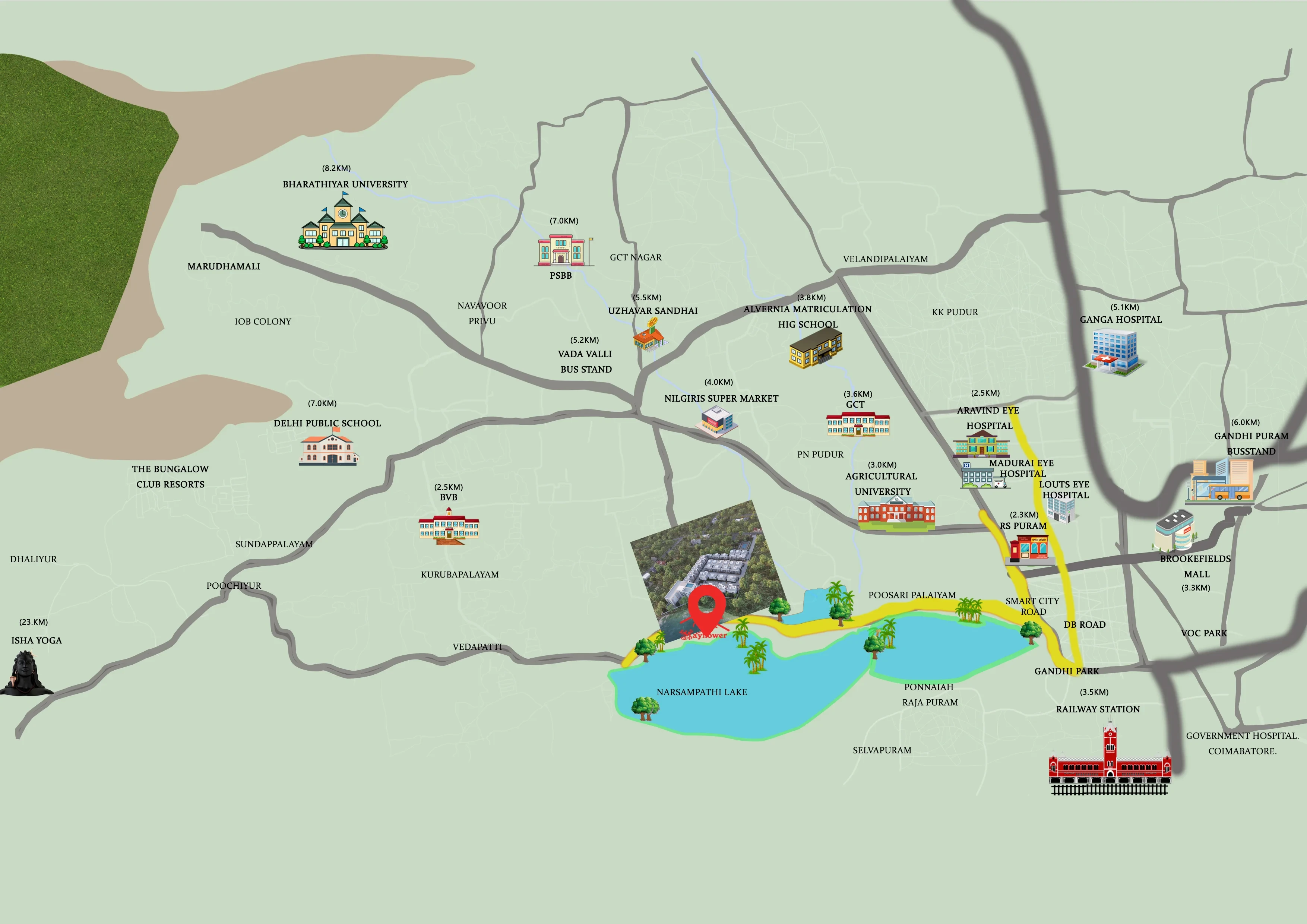 Connectivity: Strategically located along the RS Puram–Thadagam Road.