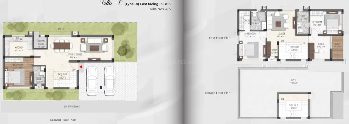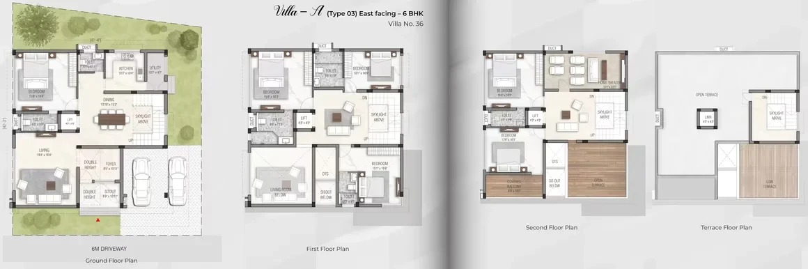 - 31 villas of 3, 4, 5 and 6 BHK configurations nestle amidst lung-space in abundance.