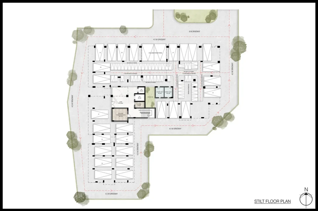 Surroundings: Set amidst 4.2 acres of lush greenery with 65% open space.