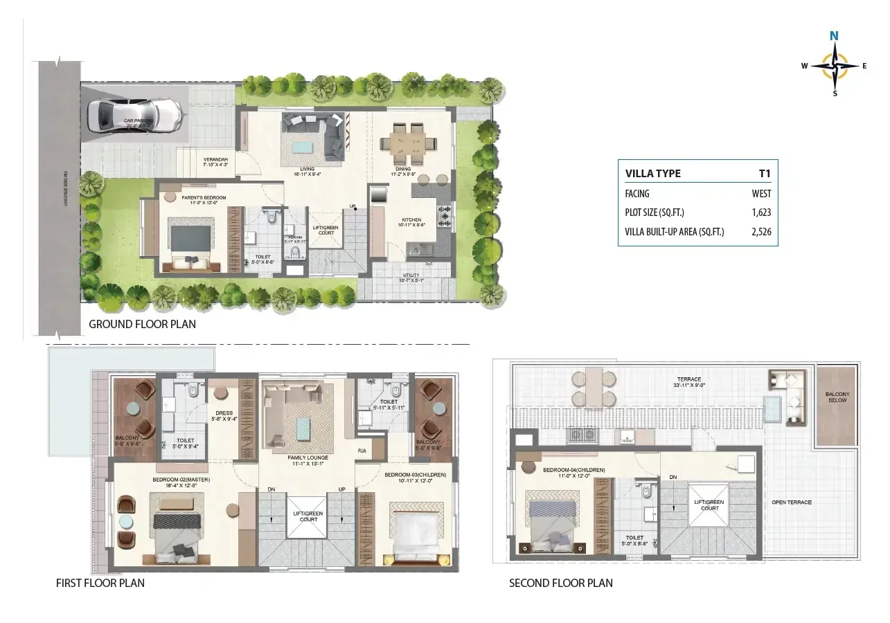 - Wooden laminate for the master bedroom and vitrified 600 x 600 tiles for all bedrooms.
