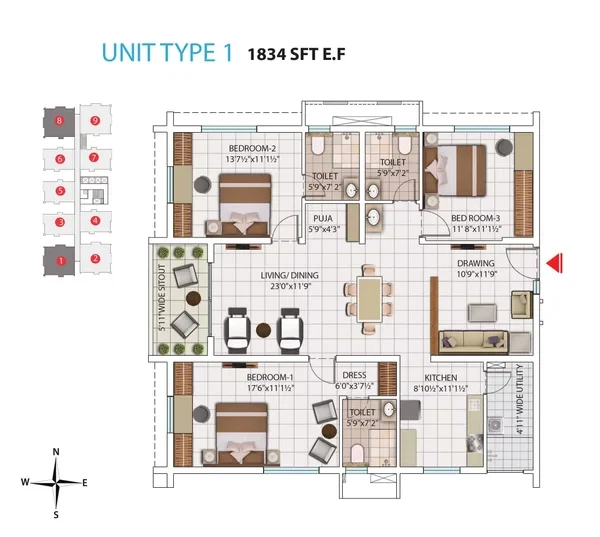 - Balconies/Bathrooms/Utility : Anti-skid vitrified/ceramic tiles