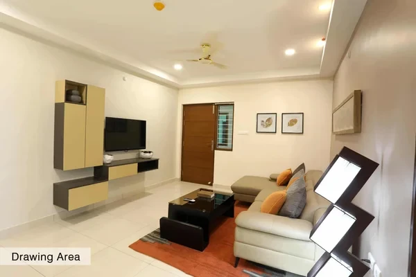 - Drawing, Dining, Living, Bedrooms, Kitchen and Balcony : Smoothly finished with putty and Acrylic emulsion paint.