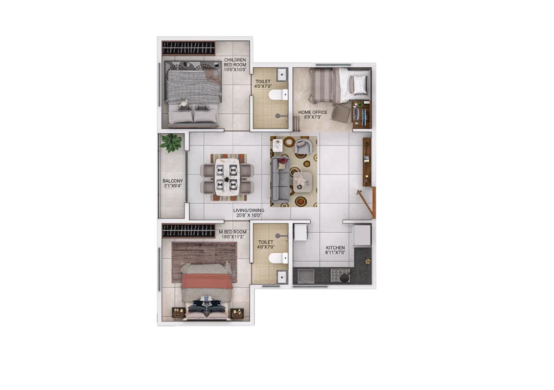 Buyers can choose from 2, 2.5 and 3 BHK homes. The unit sizes range from 790 sq. ft. to 1476 sq. ft., designed for modern living.