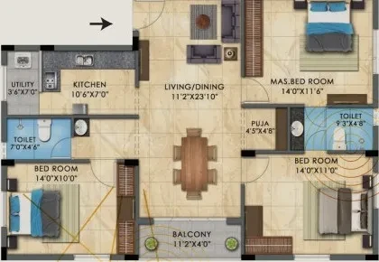 Kitchen Granite platform, Stainless steel sink with drain board, and Ceramic tile dadoing above the counter.Toilets GI / CPVC / PPR pipes and Good quality CP fittings.Electrical Concealed copper wiring, Modular switches, and AC points in all bedrooms.Structure & Safety Earthquake resistant RCC framed structure, 1000W DG Power Backup, Automatic 6-passenger lift, and 24x7 Security.