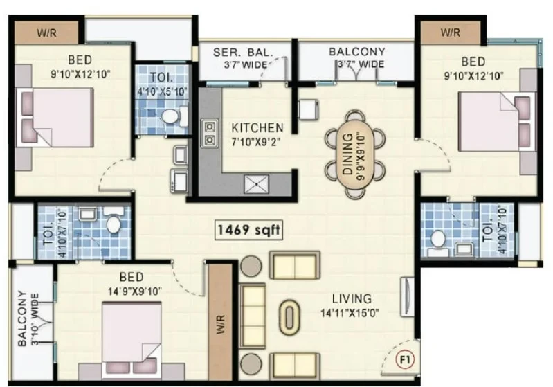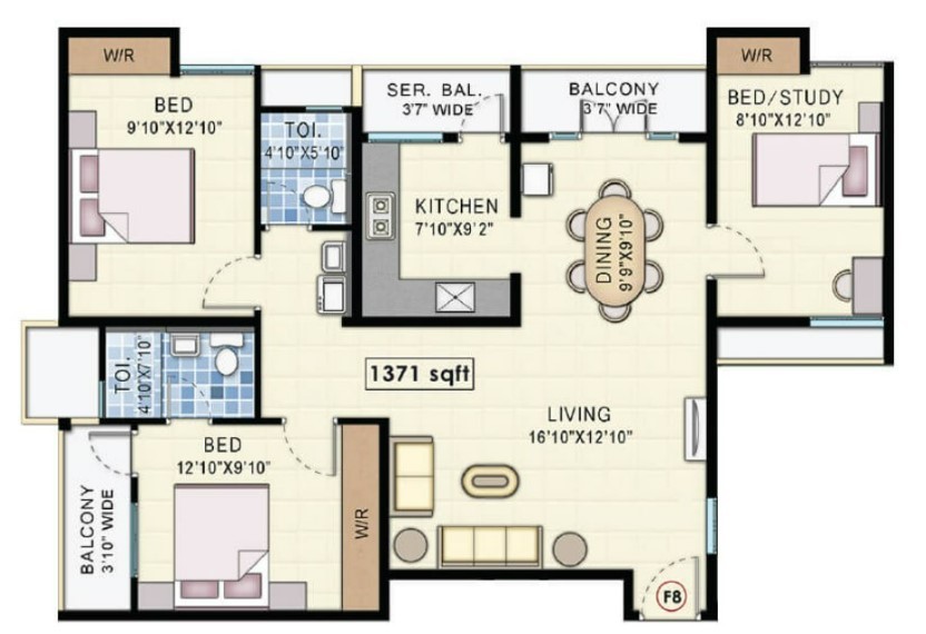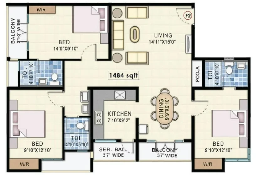 Structure: RCC wall structure designed to comply with Seismic Zone III, built using the advanced MIWAN technology. Walls: Internal walls - Putty and Navin’s Oyster white emulsion paint. External Walls -Premium anti-fungal emulsion over texture. Doors: Teak wood framed main doors with designer fl¬ush doors and Digital lock with passcode and key access. Windows: UPVC Sliding window. Flooring: 600mm x 600mm double charged vitrified tile ¬flooring. Toilet: Ceramic tile fl¬ooring with jaguar or equivalent fittings Water Supply: Bore well & sump to store water with Hydro pneumatic pumping facility to maintain uniform pressure in all ¬flats. Lifts & Generators: 3 nos. of 10-passenger and 1 no. of 15-passenger automatic stainless steel lifts. Acoustically insulated standby generator for common areas, lights & fans, 900 watts for each apartment. Home Automation Smartphone with voice control access to essential lights and fans, USB ports and telephone points in the living room and all bedrooms, Fibre Optic connectivity, and piped gas connectivity with a smart meter. Sanitation Acid resistant matte finish ceramic tiles, Designer walls and kohler (or equivalent) fittings. Communication System Living room with data point for wi-fi access & telephone point. Wi-Fi Enabled podium and common areas on individual security intercom. Electricity: Three phased with FRLS Copper wiring and circuit breaker. Ac points in living, dining & all bedrooms. Power outlets and plug points for essential electronics all over the house.