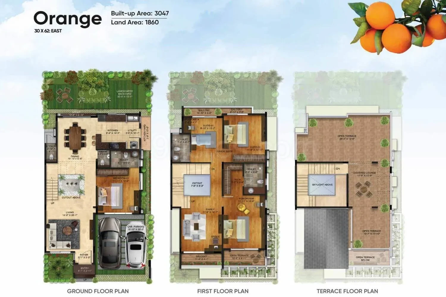 - Villas: The project offers 161 spacious, finely crafted 4 BHK villas, some including a home office and lounge area. Villas come in different variants (Lemon, Mango, Nectarine, Orange, Peach) with built-up areas ranging from approximately 2,931 to 4,096 sq. ft..