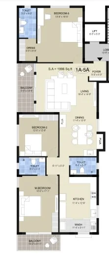 The unit sizes of these flats are all the same and extend 1996 Sq.Ft. So those in search of spacious flats in the city center should definitely come to check out this premium project that comes equipped with all essential amenities.