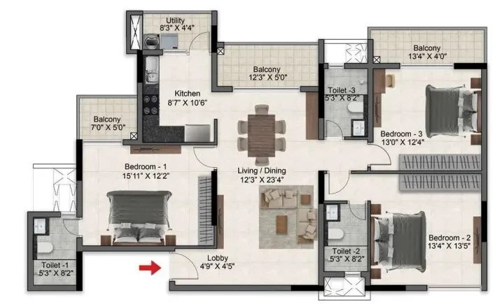 OverviewTowers3Floors15Units285Total Project Area4.5 acres (18.2K sq.m.)Open Area82 %FLOORING Marble flooring in the foyer, living, dining, and corridors Marble flooring in the master bedroom Vitrified tiles in other bedrooms and kitchen Ceramic tile flooring in the maid’s room Ceramic tile flooring in the maid’s toilet Ceramic tiles in balconies BATHROOMS Master toilet will have marble on the floor and walls upto the false ceiling Other toilets will be done with ceramic tiles All toilets with countertop wash basins EWCs and chrome plated fittings Chrome plated tap with shower mixer Geysers in all toilets Instant geyser in the maid’s toilet All toilets of the last two floors will have water from solar panels with geysers Suspended pipeline in all toilets concealed within a false ceiling Provision for exhaust fan Ceramic tile dado in the maid’s toilet KITCHEN Provision for exhaust fans DOORS AND WINDOWS Main door frame in timber and flush shutter Internal doors – wooden frames and laminated flush shutters UPVC/Aluminium frames and sliding shutters for all external doors, or a combination of both wherever required UPVC/Aluminium framed windows with clear glass FINISHES Premium external emulsion on exterior walls Internal walls and ceilings in emulsion paint ELECTRICAL All electrical wiring is concealed in PVC insulated copper wires with modular switches Sufficient power outlets and light points provided TV points provided in the living and all bedrooms Telephone points provided in the living and kitchen only ELCB and individual meters will be provided for all apartments OTHERS RCC structure Passenger and service lifts in all blocks of suitable size and capacity All external railings in glass COMMON AREA MATERIALS Marble/granite lobby flooring in the ground floor Basement and upper floor lobbies in vitrified tiles Lift cladding in marble/granite as per architect’s design Service staircase and service lobby in Kota stone/cement tiles on the treads All lobby walls will be finished with textured paint and ceilings in distemper