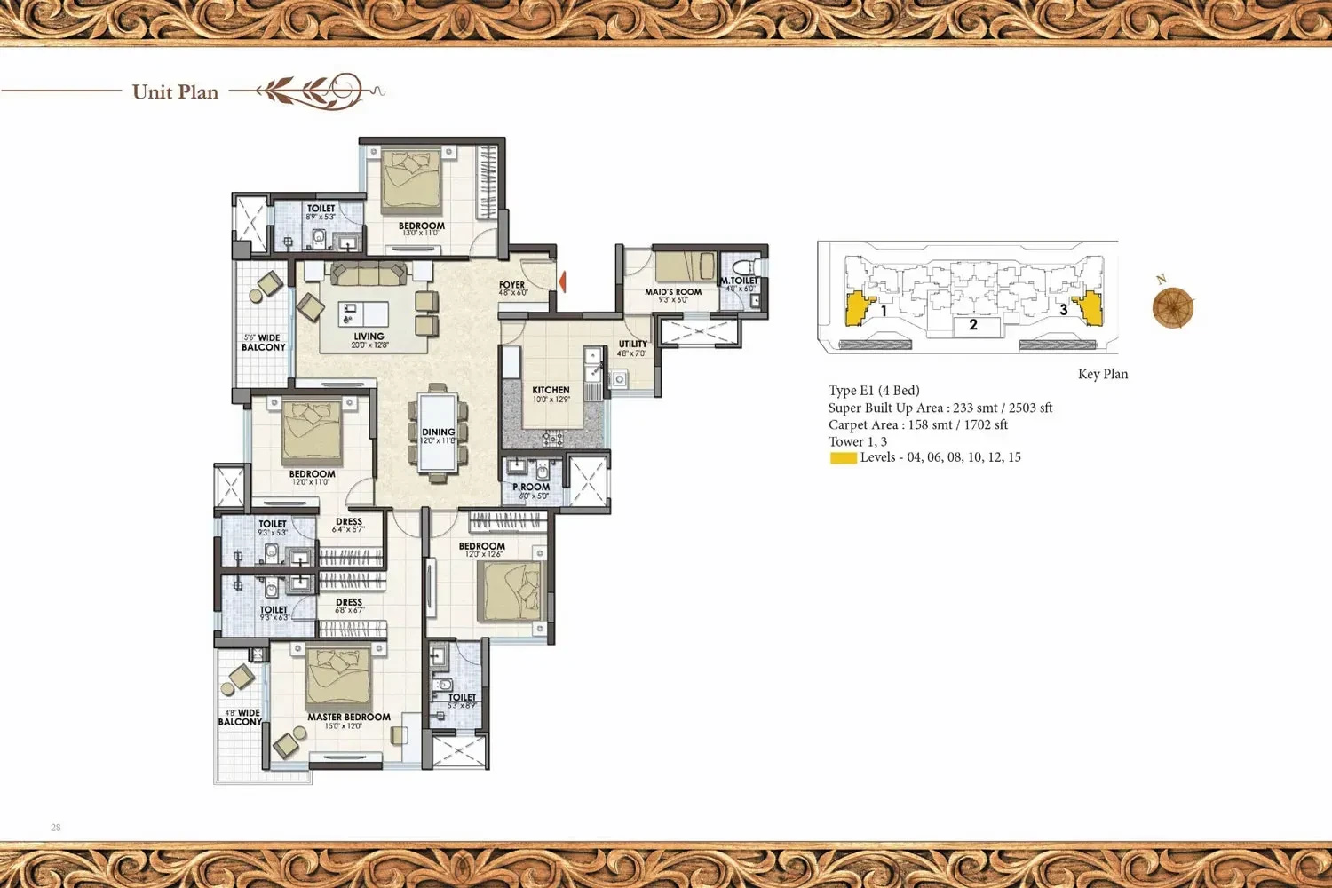 *Prestige PineWood Srinivagilu has 3 towers, with 14 floors each and 256 units on offer.