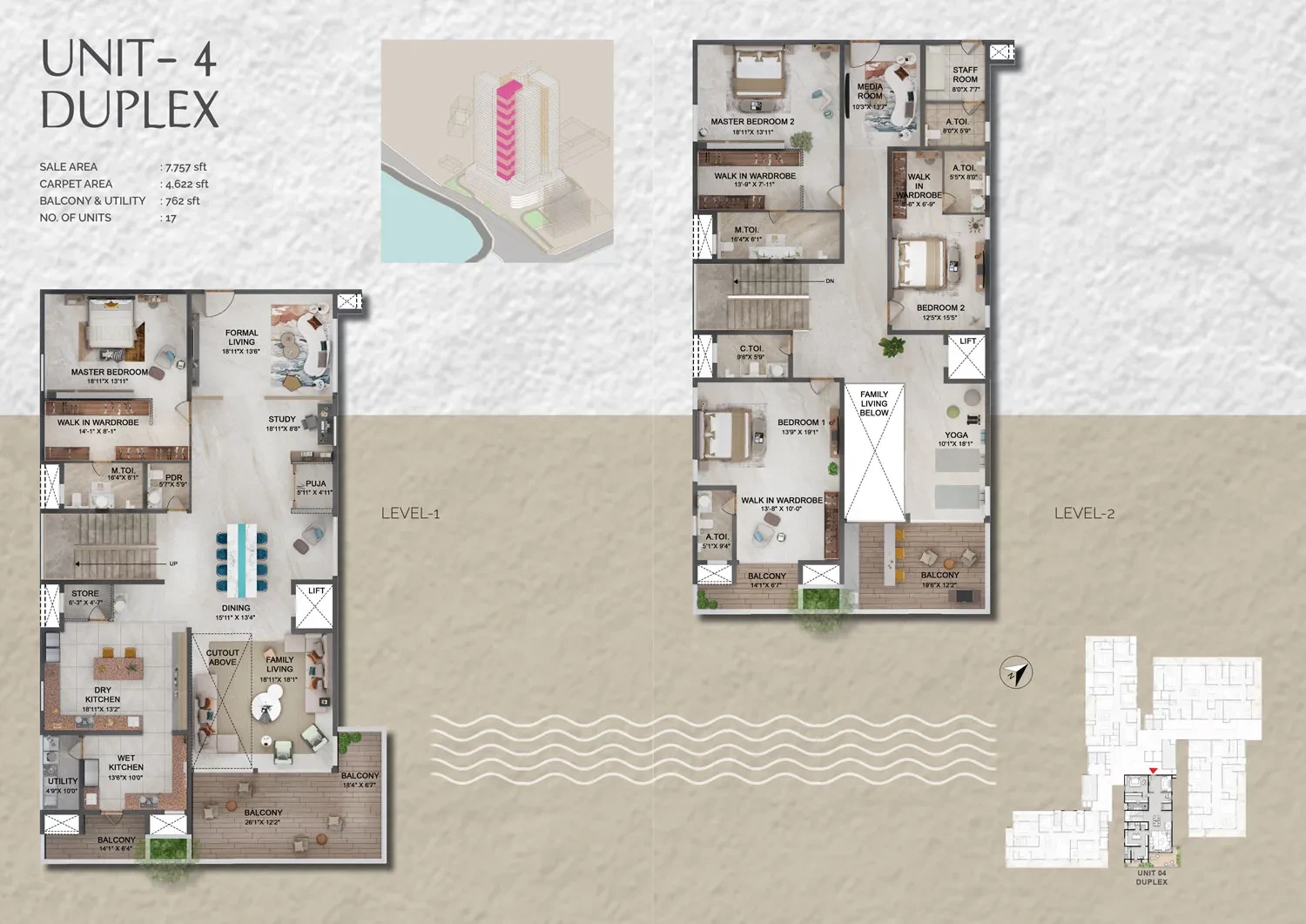 A: Explore spacious 4, 5 BHK, sized from 4955 - 8001 Sq.Ft., thoughtfully planned to cater to both family living and investment goals.