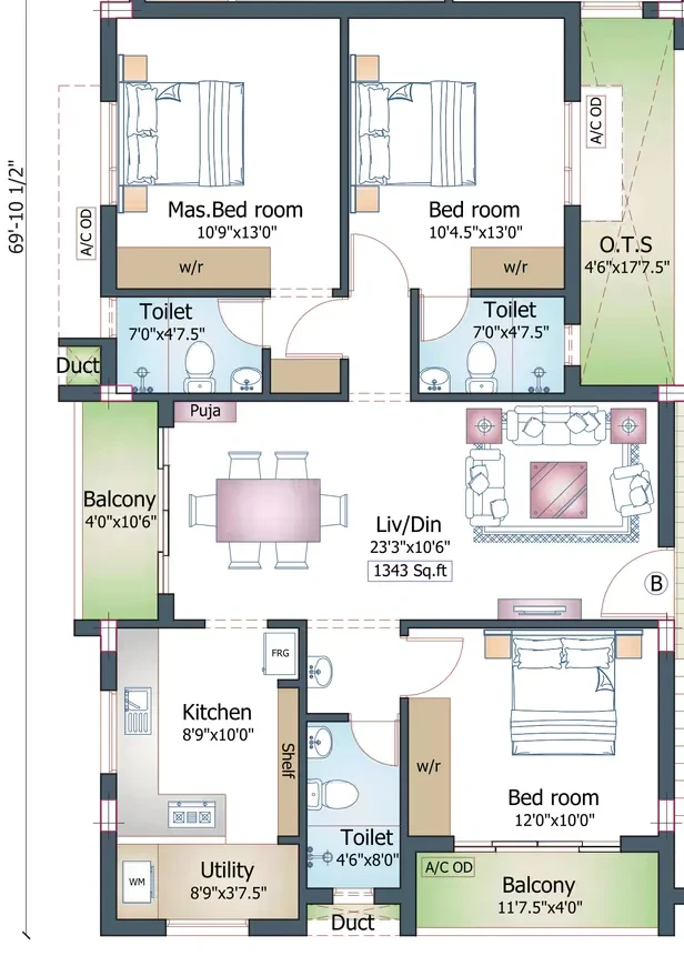 - Split A/C points for Living, Dining & all bedrooms.