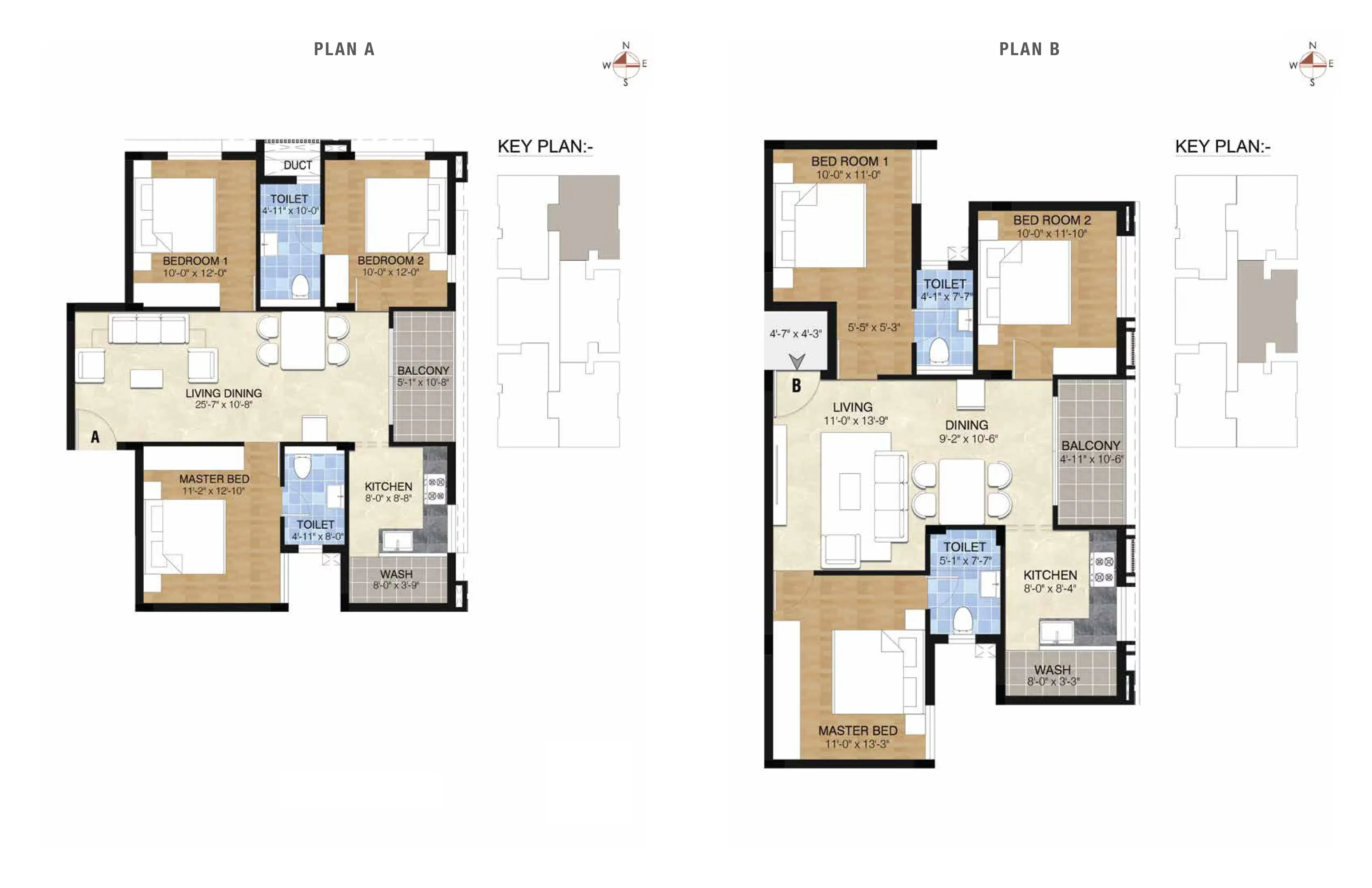 - All Bedrooms shall have first quality vitrified tile from SOMANY / RAK / KAJARIA .