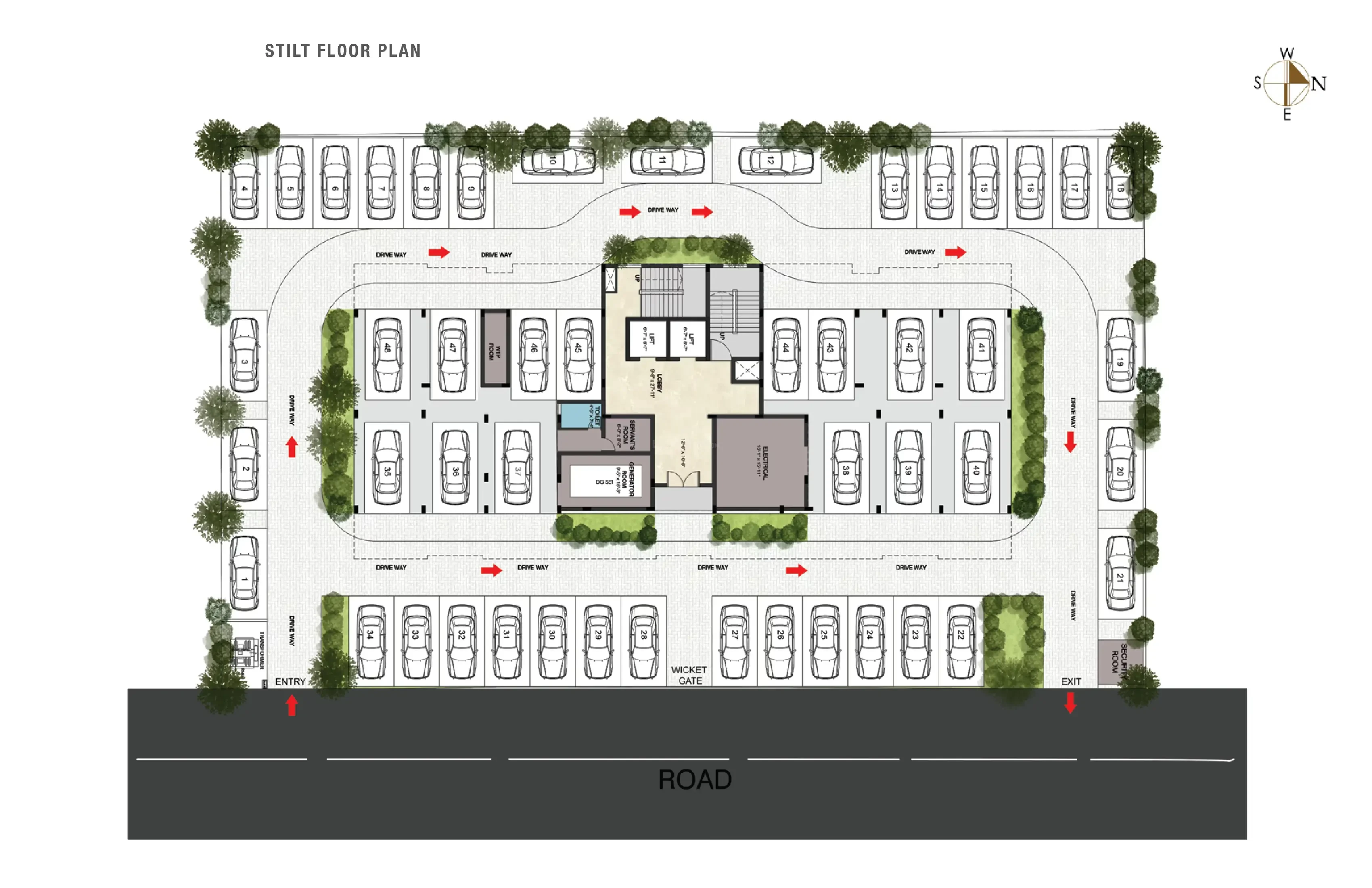 - Common electrical room in stilt floor shall be provided.