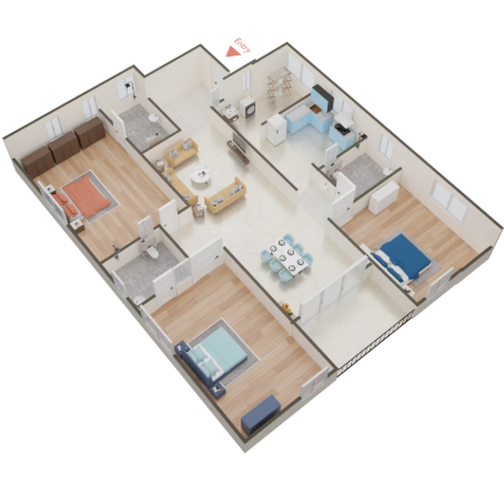 - Living, Dining and Bedrooms shall have First quality vitrified tiles from SOMANY / RAK / KAJARIA of 4’ feet * 2’ feet tiles with 4” inch height skirting (rate of Rs. 100 per sq. ft.).