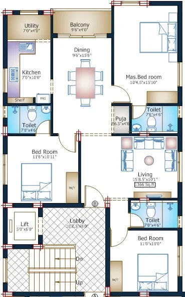 Pushkar Properties is a famous real estate developer in Chennai city who has come up with several elite projects in a prime location. Another such well-planned project is Pushkars Sarada Nivas a serene apartment in Shenoy Nagar. Located in the heart of the city residents can lead a posh lifestyle in this neighborhood. This developed tower apartment complex is entirely composed of 3 BHK flats. The unit size of these flats ranges between 1218 - 1366 Sq.Ft and boasts beautiful architectural design. Planned across a nice stilt plus 3 stroy block there are 6 apartments for sale and they come equipped with all essential amenities.