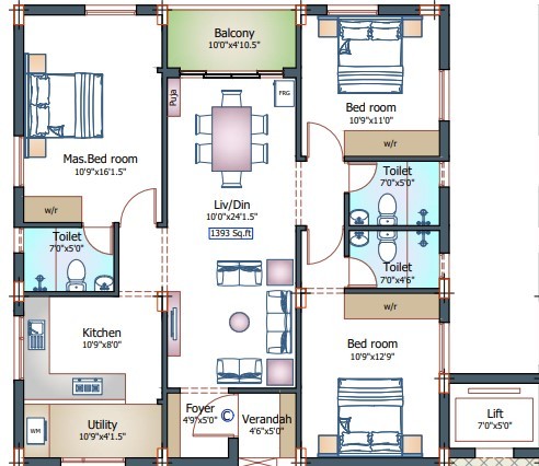 - Provision for exhaust fan, refrigerator, and water purifier.