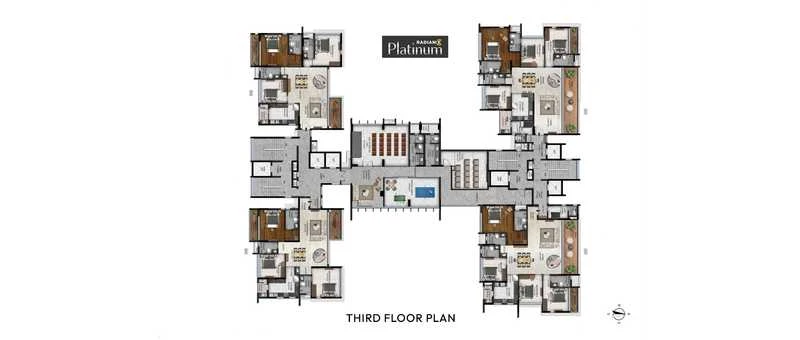 Configurations: Features 3 BHK and 4 BHK apartments ranging from 2,167 to 3,064 sq. ft..