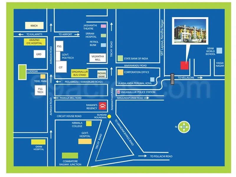 *Singanallur, Coimbatore has good connectivity to some of the important areas in the proximity such as Coimbatore International Airport, Ssvm World School Coimbatore and Psg College Of Technology and so on.
