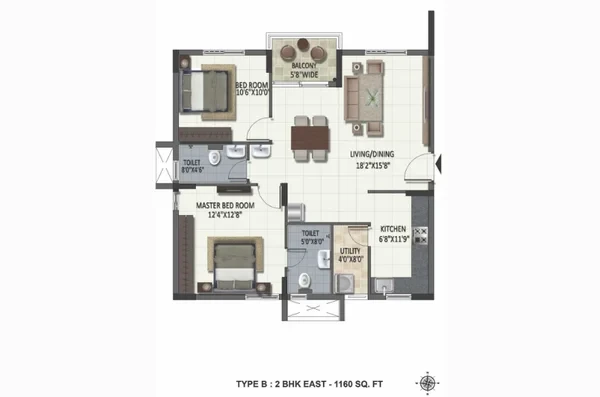 Balcony / Toilets / Utility / : Anti skid/ ceramic tiles RAK/NITCO/QUTONE/Equivalent make