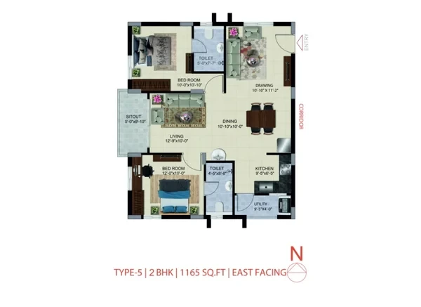 - Fan, light & 5 amps sockets in all rooms 2 no of 5 amps, provision for cable point in living area, master and 2nd bedroom