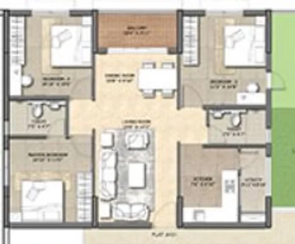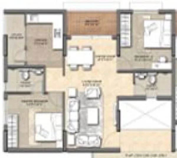 Vitrified tiles of Johnson/Aguvarmora or equivalent brand in living/dining/bed/kitchen. Anti-skid tiles of Johnson/Aguvarmora or equivalent brand for balcony. Tiles as per architect's design in lobbies & corridors.