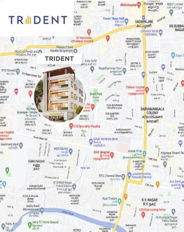 Trident feels like a quiet statement in a city that often leans toward being super loud. Housed in the heart of K.K. Nagar, this understated project by Salma Constructions Pvt Ltd brings together six serenely designed two BHK flats, ranging from 836 to 850 sq. ft. One block. Three floors. That’s it. And that’s enough. The location, too, does its part. K.K. Nagar . Trident lets you enjoy that without overstating it. Schools, essentials, and everyday routines,all within reach, but never overwhelming.