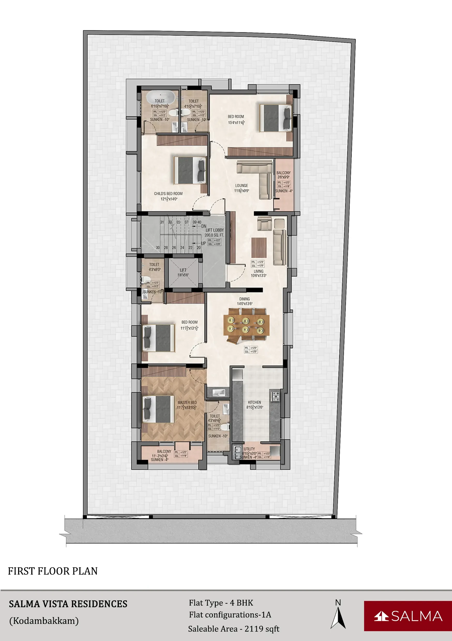Vista Residences has been developed by the well-known builder Salma Constructions. The exact address of this famous project is No:2, Patel street, Kodambakkam, Chennai - 600 024. . 600024 is the area pincode under which this project falls. At Vista Residences, a quality living is guaranteed by modern amenities and healthy surroundings