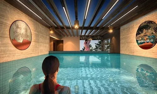 Outdoor Spaces: Landscaped gardens, a party lawn, yoga/meditation areas, an amphitheatre, and children's play areas.