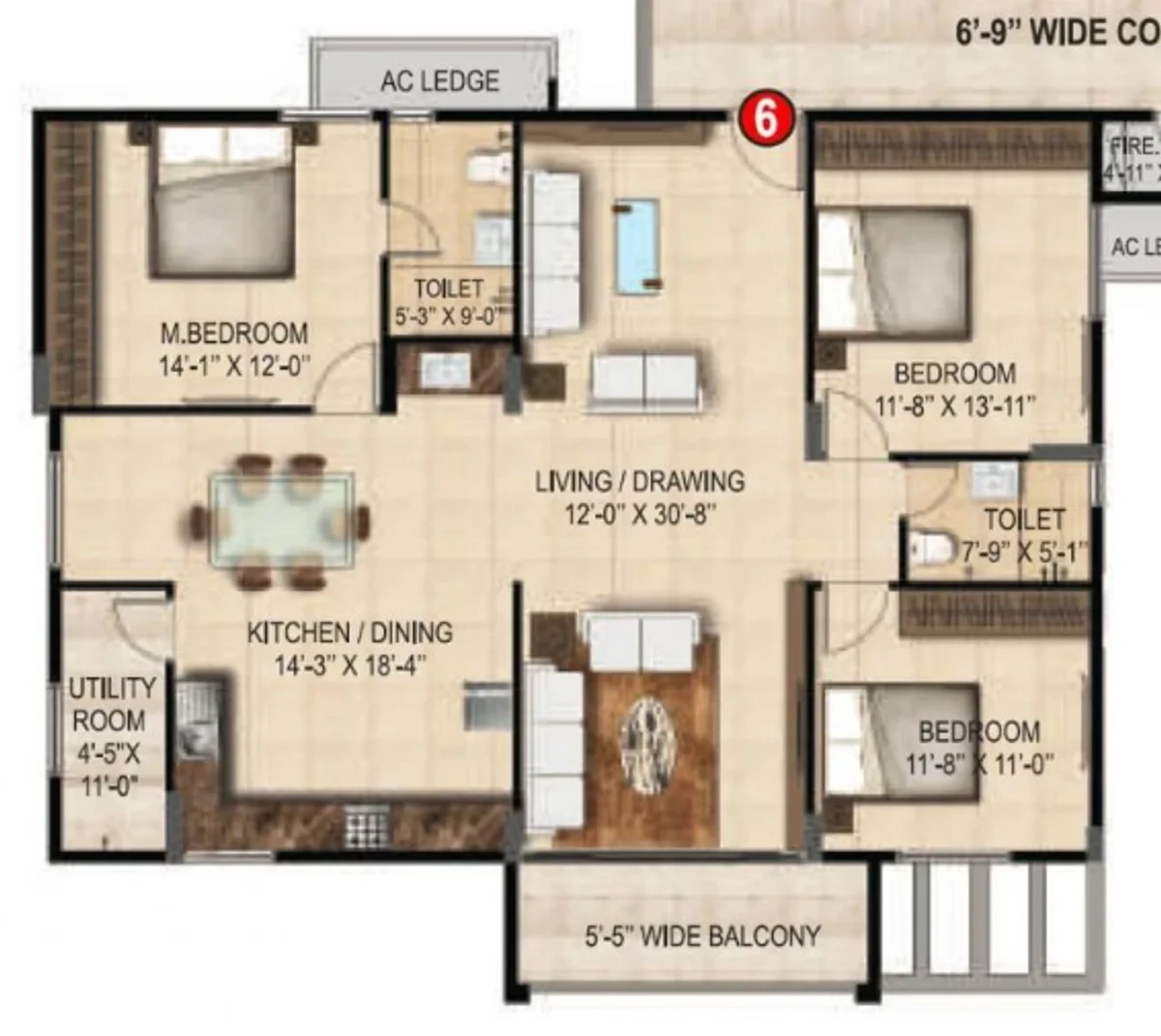 6. Provision for AC in all the bedrooms.