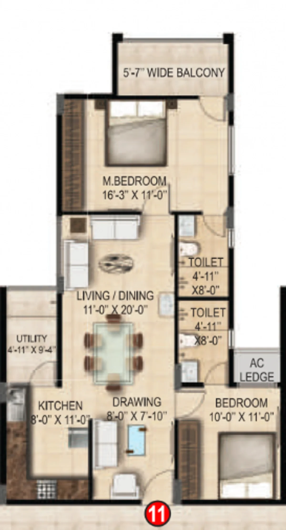 UTILITIES / WASH Provision for Washing Machine point & Wet area for washing utensils etc.