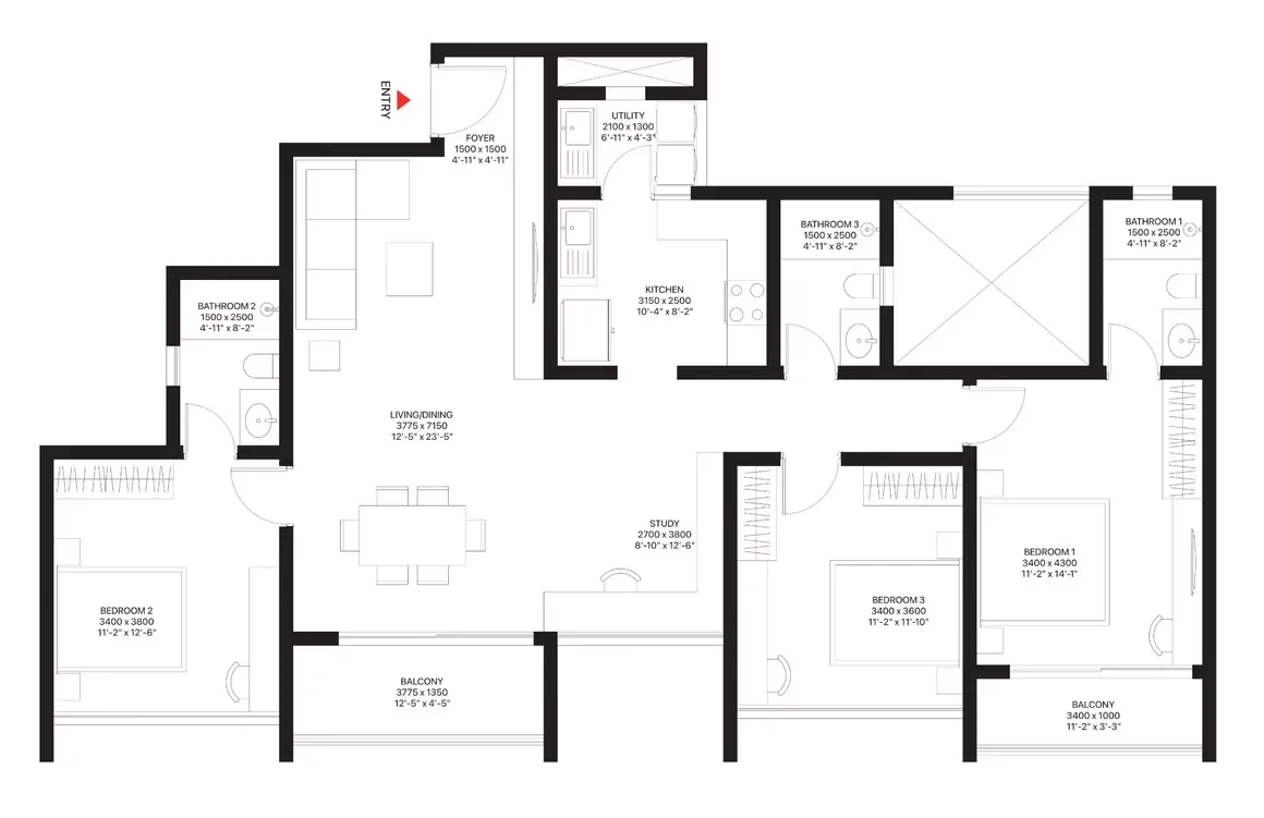 Floor-to-Floor Height: Standard ceiling heights to ensure spacious interiors