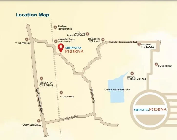 Check out Sreevatsa Poorna in Thudiyalur , one of the upcoming under-construction housing societies in Coimbatore. There are villas for sale in Sreevatsa Poorna Thudiyalur , Coimbatore. This society will have all basic facilities and amenities to suit homebuyer’s needs and requirements. Brought to you by Sreevatsa Real Estates, Sreevatsa Poorna is scheduled for possession in Dec, 2026.