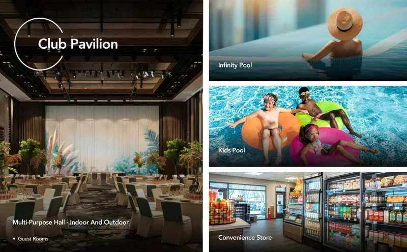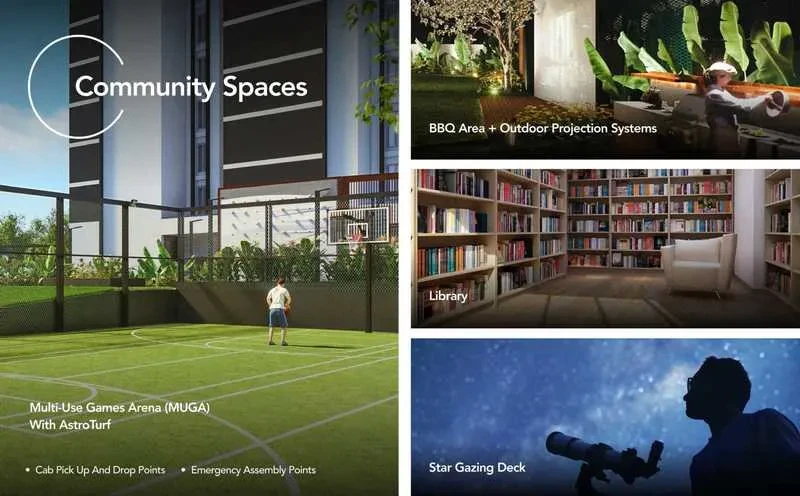 Clubhouse: Features a massive 65,000+ sq. ft. clubhouse with premium amenities including a gym, swimming pool, and multipurpose hall.