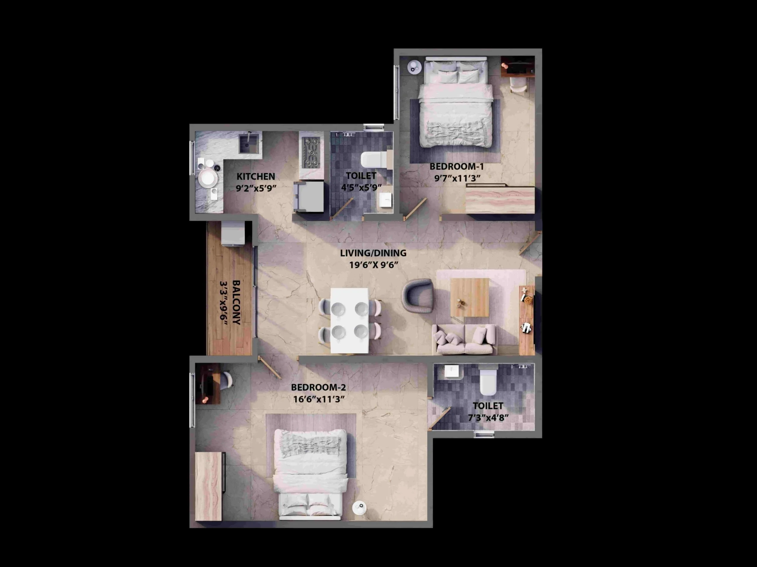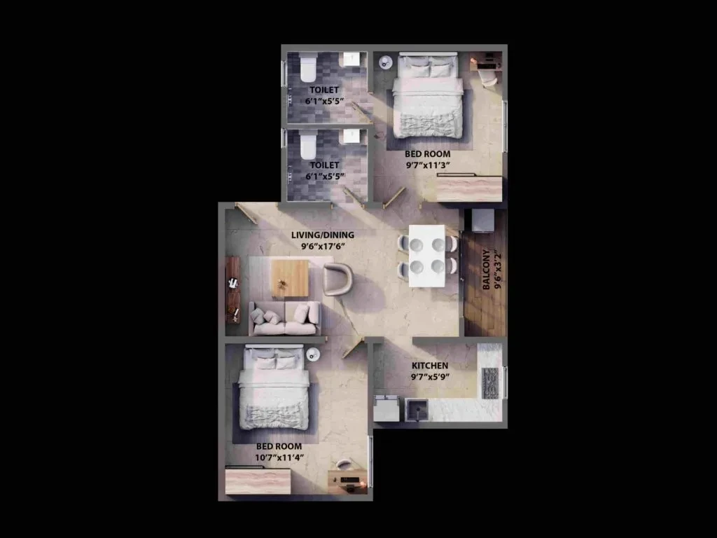 2 BHK 1000 Sqft Rs : 64.9 Lakh