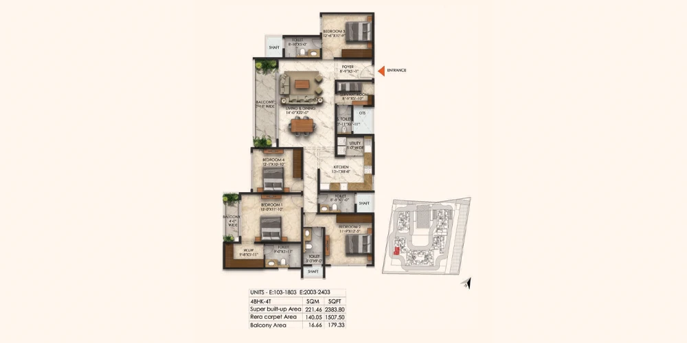 - Primary bedroom: Spacious, with an attached balcony, a walk-in wardrobe, and an attached washroom.